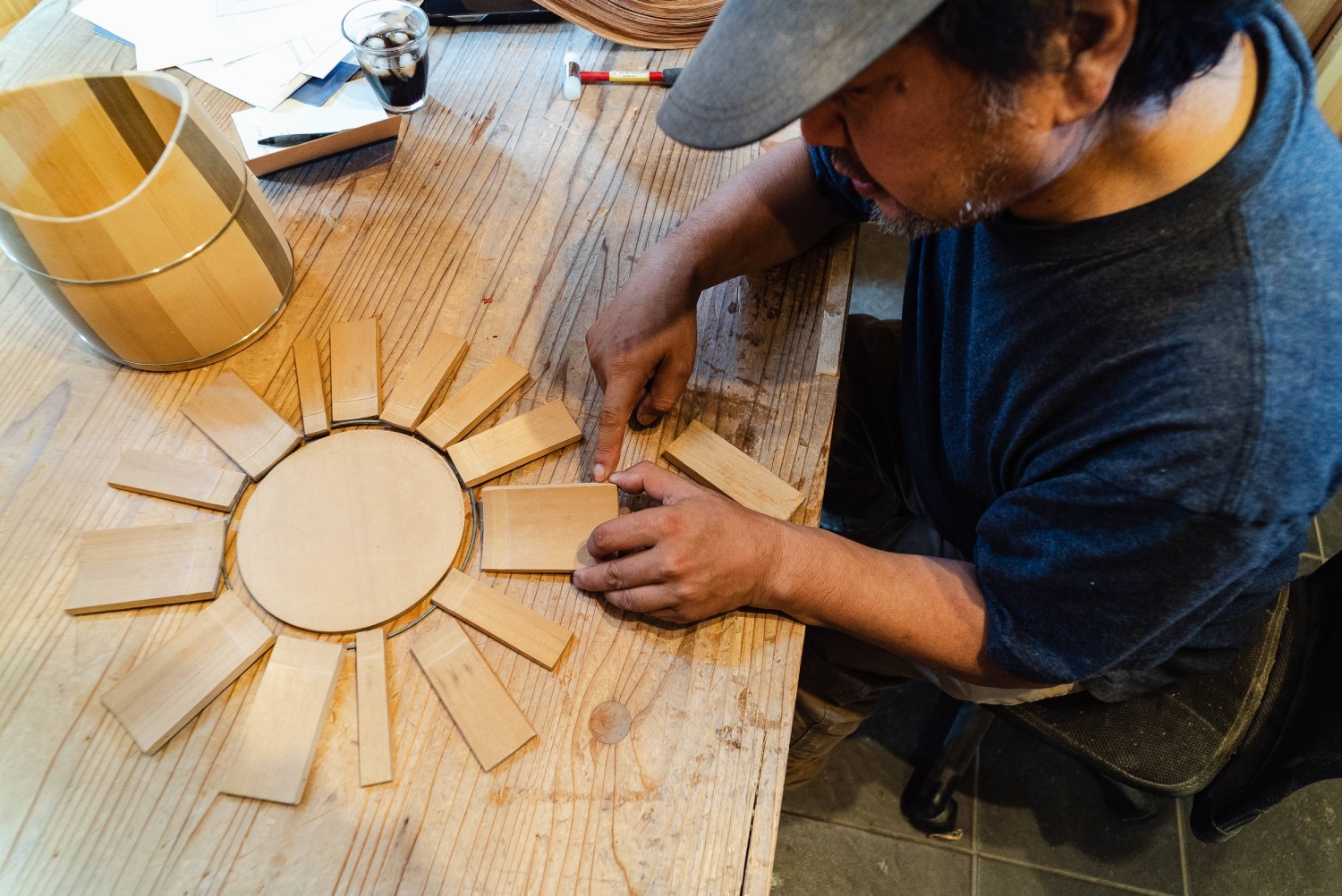 Nakagawa is determined to see what else he can imagine based on the ol’ bucket. “This craft has existed for about 700 years, but there was a real possibility that it could come to an end with my generation,” he says. “I have a mission, if not to innovate, then to transform traditional woodworking methods with new designs.”