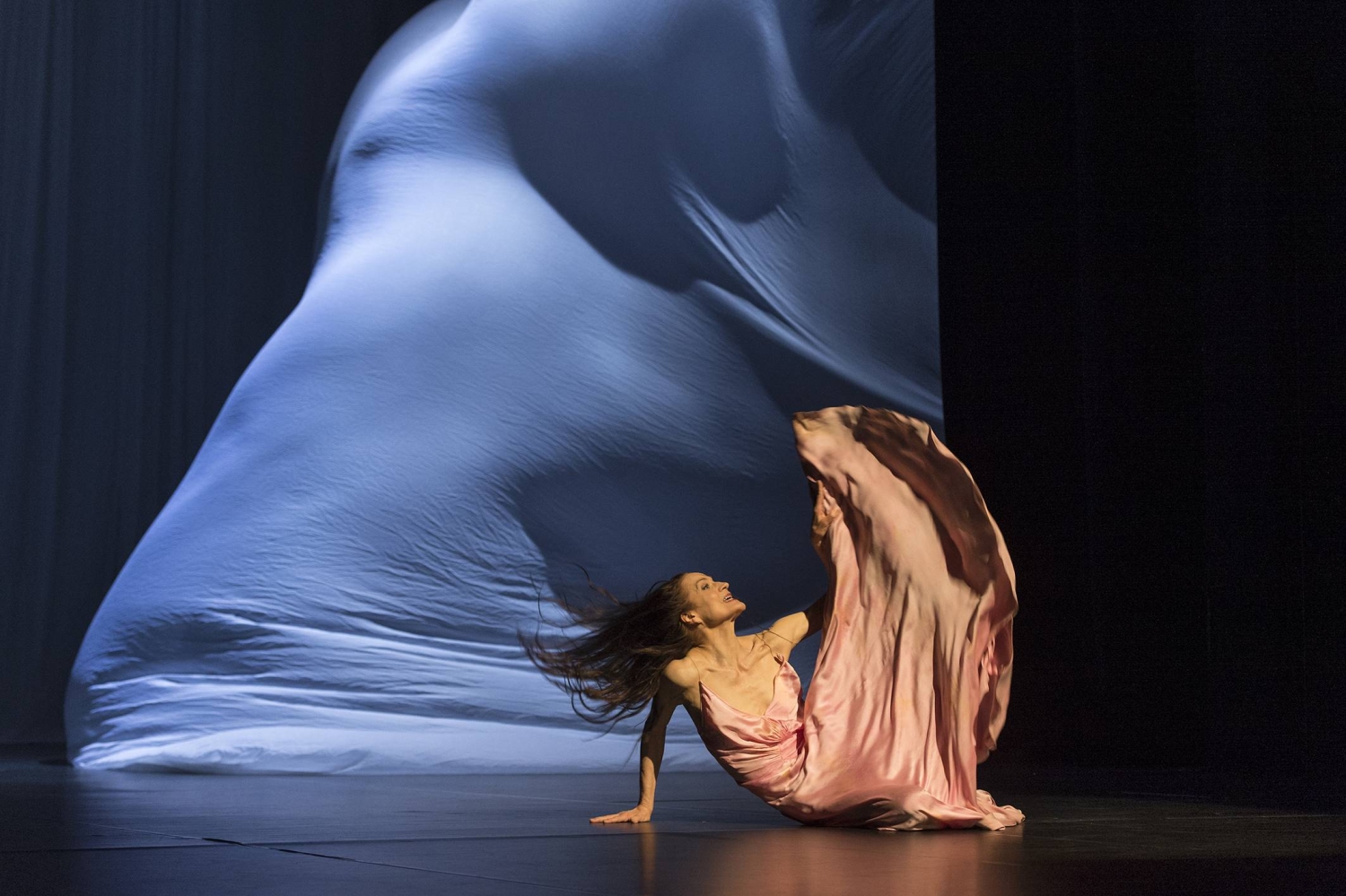 Against a minimalist background of billowing white fabric, “Sweet Mambo” unfolds as a series of contrasting vignettes probing the emotional impact of building and losing interpersonal relationships.