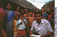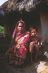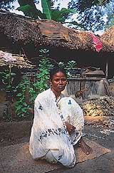 While walking along the mud embankment at Chargheri village, I met Sagori Baishnab hiding from the glaring sun under a flowery parasol. She was a handsome 22-year-old woman whose husband was killed by a tiger in July 2000. The couple had only been married one year and had just had their first daughter. Thirty-two-year-old Sundari Sarkar, from neighboring Parashmani, told me in a voice husky with anger how her husband was fishing down a small creek just across the river from her village last March when a tiger killed him. Girebala Sardar lives in a nearby mud hut in Jahar Colony. Her husband was snatched by a tiger only a few months ago. She is 45 years old and wore a tattered white sari that she used to hide her face as she told me her husband's body was never found.