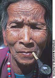 A few kilometers from the lake, I stopped off to pay my respects at the house of the headman of a local Lave village whose residents were said to be intransigent traditionalists who refused to wear Western clothes. This was not the case as the worn shorts, Chinese-made sandals and fading facial tattoos of its elders proved. I was informed that a French TV crew had passed through the village a week or two before. Because of a tight budget and schedule, they had insisted on a chicken being sacrificed, and a gong-dance performed that would normally take place on a designated day of the lunar year. According to my guide, the villagers, egged on to dress up in their tribal finery, to dispense with their "Coke is Cool," and "Gap Rap" T-shirts, to remove their Thai jeans and flip-flops for more colorful tunics and other apparel, had seemed initially ill at ease, even sheepish, but soon warmed up to the charade once the music drove away their inhibitions. It was a good performance, the team got their footage, and nobody was any the wiser.