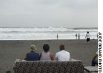 The beaches between Zushi and Enoshima were buzzing with activity as my friends and I sped southbound along the strip. They were not only crowded with sunbathers, but also choked with oversize beach bars, lined up cheek to jowl along the foreshore. Some of these bars are extravagant multistory structures that look like they've been imported wholesale from Thailand.