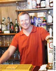 The interior is unfussy and accommodating. Unlike chain pubs or franchised sports bars, the knickknacks haven't been simply set up to look that way. They've accumulated over time. The collection of rugby balls from memorable matches, the odd pewter plate and trophy, a handful of photo albums and sundry items are nicely topped off by a stuffed Pooh Bear. A stretch of white wall just inside the entrance has been signed by various visiting teams, including the 2001 U.S. Women's Sevens.