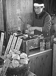 All around Enoshima, there are ample reminders of the island's past. On the wall of one shop, I saw a black-and-white photograph of the bathing beauties of Enoshima in 1960 -- a far cry from the sleek, tanned women in string-bikinis that loll on the beaches today.