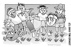 We weren't the only critters in that paddy. Several kids caught frogs. There were little fish, too. I spotted something squirmy that looked like an insect larva. My son, however, insisted it was a bloodsucking hiru (leech). A first-grader put more faith in my son's identification and ran off screaming. It was a slow-motion escape through the muck.