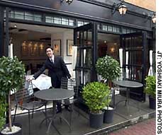 You could sit at the counter and watch him as he picks out mollusks from the iceboxes behind him, preparing them and also slicing up cuts of fresh fish for the carpaccio. But it's not the kind of compelling floor show you'd get at, say, a sushi shop. So instead, make yourself comfortable at one of the tables in the dining room proper. Continuing the converted fish-shop look, the walls are covered with shiny white tiles and hung with amusing prints of a maritime nature. Best of all, though, on warm summer evenings they throw open the whole front of the restaurant, giving a ringside view of the leafy boulevard outside.