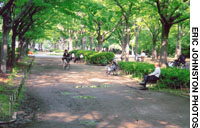 Osaka is notorious for its lack of green, quiet spaces. But if you head west from the Royal Hat to Yotsubashi Street, cross over and turn south, after about five minutes you'll come to Utsubo Park on your right. Utsubo Park is long and narrow, and for good reason: It was once an airfield. In the final days of World War II, kamikaze pilots trained here and immediately after the war, it was briefly used by the Occupation authorities to shuttle VIPs into the center of town. Utsubo is quieter and less crowded than Osaka's other major parks -- with far fewer homeless -- and it is also far more beautiful, especially since the recent completion of a large adjoining flower garden.