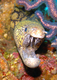 Fortunately, for the second dive, Thomas lent me his hood, which was warmer than mine. He also reminded me to add air to my suit for insulation. I was a little more encouraged as we rode a boat five minutes outside of the harbor to a dive spot called Bitagane, where we descended 22 meters to an underwater rock outcrop covered with anemones and soft corals. With a thicker hood, more air in my suit and a higher level of activity, I wasn't cold at all. Visibility was about 10 meters, which is fair for Atami in winter but much better than in summer. During the 35-minute dive through beautiful coral formations, we spotted squirrelfish, boxfish, a colorful sea slug called a nudibranch and several moray eels. At the end of the dive, on our way up, the sun broke through and illuminated the ocean just as we went through a school of shimmering sardines. It was a wonderful finale in an exciting, comfortable dive.