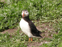 In season (May, June and early July), there are close to 40,000 breeding pairs of puffins, and these cheerful little chaps positively welcome visitors. When humans are about, predatory herring gulls and lesser black-backed gulls keep their distance.