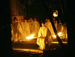 "Pilgrims were notorious liars and exaggerators," writes Chaucer biographer Donald R. Howard. Exaggerators certainly, their expanded truths a reflection of their expanded if undisciplined minds -- but liars? Who can account for what the exalted eye sees, or thinks it sees, in strange places far from home? Boorstin finds in the "Guide de Pelerin," a popular medieval pilgrim guidebook, a tale about pilgrims who were refused hospitality at all but one house on a street in Poitiers, France. That night all the houses in the street burned down -- except, of course, the one.