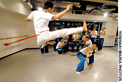 Not surprisingly, given its dynamic qualities, capoeira has made cameos in movies, music videos, manga, anime and video games dating back to 1993 with Sega's "Genesis." "The first time I saw capoeira was on a video game called "Tekken." I thought it looked amazing so I did an Internet search and found classes in Tokyo," says 37-year-old Hidehito Tokawa, who started capoeira about a month ago. "Since I'm a bit older, I think I'm more impressed by the skills of the advanced students than the new younger students are. It takes a lot of flexibility. But I think anyone can do it. If there's a will, there's a way."