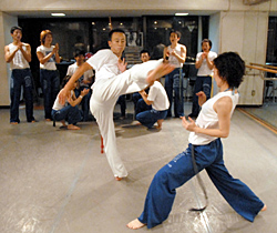 "I realized now that I'm older, I've lost some strength, flexibility and stamina," says Kuga, who was drawn to capoeira because he wanted to get back into shape after taking a long break from exercise, and who now has a very obviously toned upper body and arm muscles. "Learning capoeira brought those things back. After about one month of classes, I no longer felt exhausted afterward.