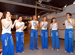 "I like capoeira because it's not only a martial art, but also incorporates music, dance, history and culture," says Yurika Mitani, 26, who started doing capoeira three years ago after hearing about it at a university where she majored in Portuguese.