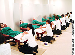 According to Sayo Kanagawa, RAJA's public relations director, there are 100 Queensway salons throughout Japan and about 1.8 million people enjoy reflexology treatments in RAJA salons every year. And it's not just the latest women's fad -- men make up about 40 percent of the chain's customers.