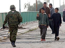 Because of Article 9 of the Constitution, SDF activities are entirely restricted to Japan's land and maritime territory. But due to special legislation by Koizumi's Cabinet, the SDF was dispatched to Iraq. This is unconstitutional.
