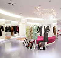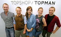 Topshop began life as a cheap-chic retailer with a fast-paced stock cycle similar to those of Spain's Zara and Sweden's H&M, but it has steadily been transforming itself into a more upscale brand through runway shows and collaborations with talented young designers. Topshop, and its menswear sibling Topman, has been expanding overseas through franchise deals and has outlets in 29 countries. For the fashion capitals of New York and Tokyo, it has entered into partnerships with specialty stores (Barneys and LaForet, respectively), and has plans for major expansion. The first step is the opening of a combined Topshop/Topman store inside LaForet Harajuku, which stocks edgier designs, many created in collaboration with up-and-coming talents based in London. Topshop PR manager Andrew Leahy (above, second left), in town with other executives for a launch event attended by over 1,500 frenzied fashionistas, described the new store as "a slick boutique version of what we do in the U.K." The pristine white interior may be a far cry from the jumbled London megastore, but the high-fashion-at-low-prices concept is largely unchanged. Westerners looking for London sizes will be pleased to know that Topshop carries clothing as large as a Japanese size 16.