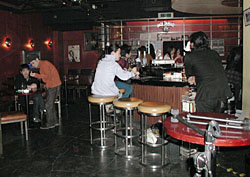 Whereas the old Red Shoes was expensive and somewhat exclusive, the new one is priced like most bars these days (with little or no cover charge, even on live nights, and drinks priced around 800 yen). And it's fun. There is no posing and posturing. On nonlive nights you will find fresh-faced DJs playing a lot of the tunes that can also be found in the bar's jukebox -- old rock, swing and blues tunes from the '40s -- and they play them on original 45s. It has also become a popular afterhours hangout on Friday and Saturday nights, when it stays open till you've had enough. Even hardcore clubbers I have spoken to give it the thumbs up.