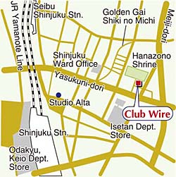 When Tsubaki House closed, London Nite kept going and it is still is, even now. For the last 10 years, the party has been held at Club Wire in Shinjuku, which, oddly enough, is located on the other side of Yasukuni-dori from where Tsubaki House used to be. But unlike Tsubaki House, Club Wire is (appropriately enough) located underground in a basement, deep beneath Hanazono Shrine.