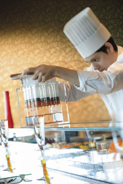 Created by Japanese-American chef Jeff Ramsey — winner of Eat-Japan's "Sushi of the Year" award in 2006 — the 25- to 28-course menu in the 38th-floor Oriental Lounge is nothing if not highly unusual — complete with breathtaking views. Eat-Japan is a UK-based organization dedicated to promoting Japanese food, drink and culture outside Japan.