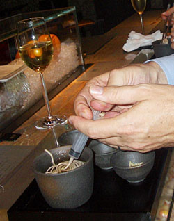 Tapas Molecular Bar opened in December 2005 at the same time as the hotel, which was last year rated the only 6-star hotel in the world by the prestigious American Academy of Hospitality Science. Adding to the exclusivity, the bar seats just seven, and has only two sessions daily, at 6 and 8.30 p.m. (And that's not to mention the mensroom with a view that's been described as "like taking a leak all over Tokyo.")