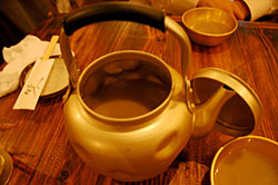 Yellowing newspapers, empty booze bottles and corrugated steel panels might sound like a rather desperate choice of decor, but it works like a charm at Shinjuku Pocha. This rustic Korean izakaya, located on the same narrow alleyway as The Ghetto (see above), has a down-home vibe befitting its name: an abbreviation of the Korean word for roadside food stall. Pocha has the vast menu of fiery foods such as chijimi (spicy pancakes) and bulgogi (grilled marinated beef) that's essential to any Koreatown eatery, but it stands out for its love of makkoli, a milky white fermented rice wine that's served here in tin kettles. Serving alcohol in units of "kettles" may explain the perennially jovial ambience at Pocha.