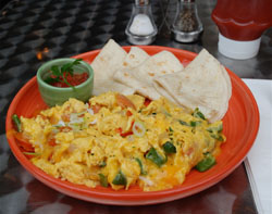 The steak and egg platter will seriously dent all but the most famished of appetites. The chunky rib-eye steak is seared just right and comes with a couple of eggs, served sunny-side up of course, and a small portion of homemade fries — not of the French variety but pan-fried moist and well-browned.