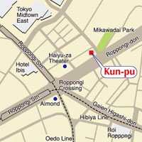 Kun-pu; 4-8-3-2F/3F Roppongi, Minato-ku, Tokyo; tel. (03) 3404-3408, (03) 5772-3279. Opening hours 6 p.m.-1 a.m. (2F), 6 p.m.-5 a.m. (3F), both closed Sundays and holidays. Service charge ¥800 (bar only). Drinks from ¥800, food from ¥1,000.