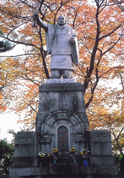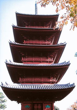 Ota's prize flight, though, consists of 96 steps leading up to the temple, Ikegami Honmonji. Sacred to Nichiren, who passed away on the site, Honmonji features two important cultural properties of Japan, Tokyo's oldest five-story pagoda (1608) and a small wooden sculpture of Nichiren.