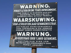 After two hours of this bedlam, we finally see it; a besieged security light, a grim-looking building, a gate and, nearby, a ghost town half-buried by shifting dunes. We have found the entrance to the diamond fields of the Sperregebiet (German for the "forbidden area").