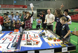 In the competition, which was started by the U.S.-based charity FIRST and toy maker LEGO in 1998, children in each team use a kit provided by LEGO to design and build their own autonomous, portable robots that perform various tasks. Teams score points whenever their robots, equipped with light and touch sensors, move back and forth between their bases and structures such as a hydraulic dam and a house with a solar-powered roof. Teams also make oral presentations of their technical and team-building skills, as well as research related to a particular theme, which this year was exploring the best ways of producing and consuming energy.