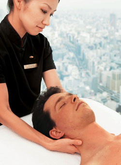 The Spa at Mandarin Oriental Tokyo's "Spa for Papa" package includes a 70-minute private workout at the 38th-floor fitness center, 30-minute use of the jet bath and dry sauna at the Heat and Water Area on the 37th floor, and 80 minutes of body or facial treatment. During the private workout, a professional instructor will teach dads how to stretch and exercise on machines to improve body balance and fitness, and offer advice on how to maintain a healthy lifestyle at home. Fitness wear and shoe rental, and a special nutritious drink are all included free of charge.