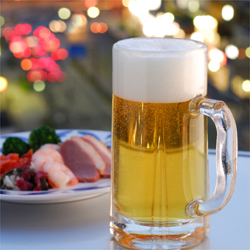 Forty kinds of food and snacks, for example, fried chicken, spit-fried fish, meat and vegetables, oden, takoyaki, seafood salad, salmon marinade, tropical fruit and ice cream, can be enjoyed with cold beer and 18 other kinds of drinks.