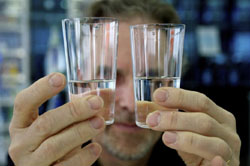 The sommelier and brewer both noted that Contrex's initial soapy taste becomes gradually sweeter as you drink it. Water pro Yamanaka, who was holding blank paper behind her glass and peering intently for bubbles or impurities, announced that in her current mood she preferred the other water, which turned out to be Bernina from Italy — a brand nobody else had heard of. Swinnerton and I also backed Bernina, sending it to the quarter finals.