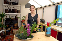 The vase's color, texture and shape should harmonize with the flower arrangement, said Lundy, who has been teaching ikebana in English at her home since 2001 to students of various nationalities.