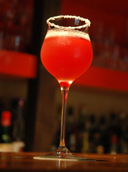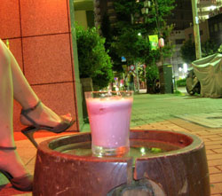 "When I think of summer, I think watermelon and vodka," says Makishima, head bartender of the ever-so-stylish Tamagawa branch of Kyoto's Maruume bar. "I used to eat watermelon as a kid, so this is a nostalgic taste." The salt rim reflects a Japanese habit of eating watermelon with salt. It's a beautiful, light and refreshing drink; a perfect summer pick-me-up.