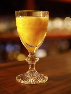 One of Japan's best-known bartenders, Ozaki has created hundreds of recipes in his half-century behind the bar, and his custard-yellow creation for Liquid Culture is a zinger. Using egg yolk for a power boost and a liberal helping of lemon juice for a refreshing nose, Ougon no Tsuki is not nearly as noggy as it looks on paper. Ozaki says he was inspired by the upcoming moon-viewing festival (Aug. 15).
