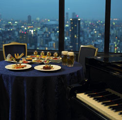 Cold draft beer, hot and cold plates of food, live music and a night view of Osaka can all be enjoyed in the hotel's 32nd-floor Jet Stream banquet room 100 meters above the ground.