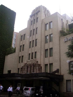 The Art Deco building, designed by William Merrell Vories (1880-1964), opened in 1937 as an institute for enlightening women in the Western lifestyle. Its founder, Keitaro Sato, chose an inauspicious time to create a paean to the West. The building was confiscated by the Imperial Navy. Next it was requisitioned by Occupation Forces to billet the Women's Army Corps. The WACs dubbed their digs the "Hilltop Hotel." Toshio Yoshida, a manager at Asahi Glass Co., kept the name when he leased the building in 1954.