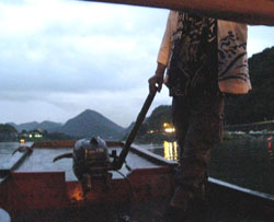 My night tour ended up being one of the most exhilarating 60 minutes of my life. As the 5-meter cormorant boat is carried down the river by the current (with viewing boats in pursuit on either side), about six birds are let out on 3-meter leashes. Like dogs out for a run, they fan out and begin scanning the water below them.