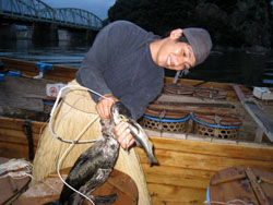 He said about six 20-cm fish would fit inside a cormorant's throat. The haul could include ayu (sweetfish), catfish, carp, even eel, said Muto. "The fisherman has to watch his birds and keep track of how many fish each of them has caught. When they've got enough, he pulls them in."