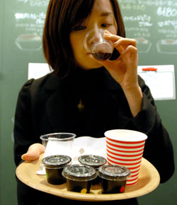 Tsuchino explained that our sense of smell is influenced by our other senses, such as sight. So people tend to imagine the smell of dark-colored fruits when they consider red wine. "We sense taste through our eyes, noses and tongues. The information these sense organs receive is combined in our brains and analyzed," Tsuchino said, adding that our past experience of eating and drinking also influences our perception of taste.