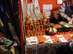 In addition to collectibles, local housewives drop by to stock up on such comestibles as shichimi togarashi, a spicy seasoning sold in small gourds closed with a wooden stopper. Other fare on offer might include miso (soybean paste, used in soups), konbu and nori (varieties of sea vegetables); pickles and preserved vegetables of all sorts. And let's not forget all those traditional Japanese confections!