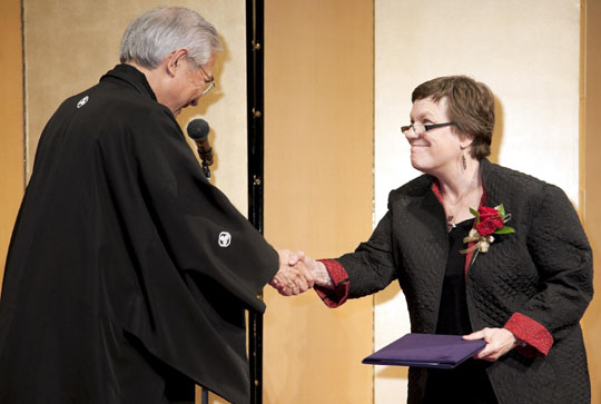 Recently in Japan to receive the Japan Foundation Award 2009 on behalf of the AATJ in recognition of its work, the Illinois native and mother of two daughters made an impassioned speech at the ceremony — in Japanese — on the history, present situation and future of Japanese-language education in the United States.