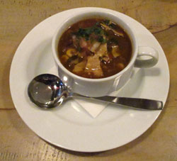 We were also intrigued to find a menu of weekly specials that was far from the norm for a fast-food restaurant. It wasn't the weather for chilled carrot and ginger soup, but we certainly felt like trying the seafood gumbo. It didn't disappoint. Dark, rich and nicely spiced with both chili and black pepper, it includes clams, fine-cut squid, carrot, mushrooms, and even the crumbs of broken-up chips for extra texture.