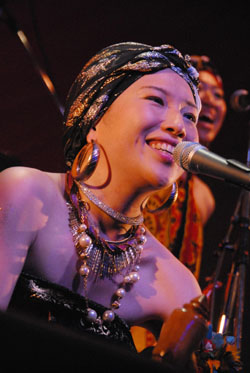 A young Japanese woman in colorful African clothes appeared on the stage at a small club in Tokyo's central Roppongi district on April 25. She sat down on a low chair in front of an eight-stringed wooden instrument.