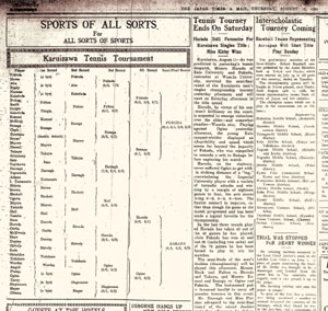 The affiliation of The Japan Advertiser and The Japan Times with the Karuizawa International Tennis Tournament meant that it was given significant play in their respective pages — a fact of great importance to tennis historians today.