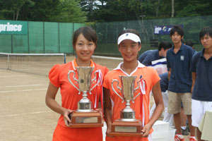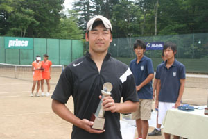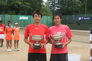 The recipients of The Japan Times Cup this year were the doubles team of Yohei Ishida and Yukimichi Kakimoto, who also won last year. Both are now full-time company workers, though for a few years Ishida tried his luck on the international "Futures" tour, for players hoping to enter the professional ranks. The pair often play in other local competitions, such as the Den-en Tennis Tournament held in Tokyo's Ota Ward; though, as Ishida explained, "the Karuizawa tournament is a big, historical, high-standard tournament, so to be able to play here with our friends and put our training to the test is special."