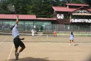 Clearly the Karuizawa out is no old wives' tale. Go Yamazaki, the 33-year-old who won the men's singles title this year in a two-set base-line slugging match with Tokyo-based Indian national Krishnan Sankaran, explained that he tightens the tension of his racket strings to reduce their spring and thus compensate for the thinner air. "This year, it didn't cause me too much trouble," Yamazaki said of the Karuizawa out.