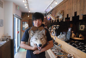What is that uncanny harmonica riff? It's familiar, decidedly familiar. It issues from a little souvenir shop called Kamuy. Kamuy means "god" in the language of the Ainu, a Hokkaido aboriginal people who preserved their hunter-gatherer culture well into the 19th century. Their pantheism is encapsulated on a black wooden signboard: "Fire, mountains, valleys, the ocean, animals, plants, even tools and clothing the Ainu make and use, all are Kamuy."