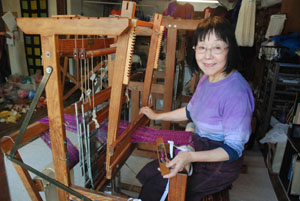 A few steps away, in a little stone atelier that was once a canned-goods warehouse, master weaver Kazuko Teraoka sits at her hand loom, weaving a winter coat strand by silken strand. Kazu is the name she's given the establishment. Otaru-born (in 1939), she's been weaving, she says, for 53 years. The little shop above the studio overflows with everything that cloth, dye and skilled hands at a loom can produce — T-shirts, skirts, handkerchiefs, sweaters, shawls. Kazu sells them not only to local customers and sightseers but to department stores across the country.