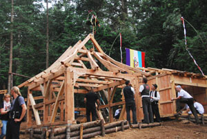 "No one's asked me to build a house with an ax yet," said Litzka, the German carpenter, noting that with nearly 60 people working for 10 days — and preparatory work having started a full two years before that — the two small structures would have a sky-high price tag were they to be sold. In fact, the event was financed by the participants themselves and donations from toolmakers and other companies in Europe and Japan.